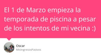 El 1 de Marzo empieza la temporada de piscina a pesar de los intentos de mi vecina :)