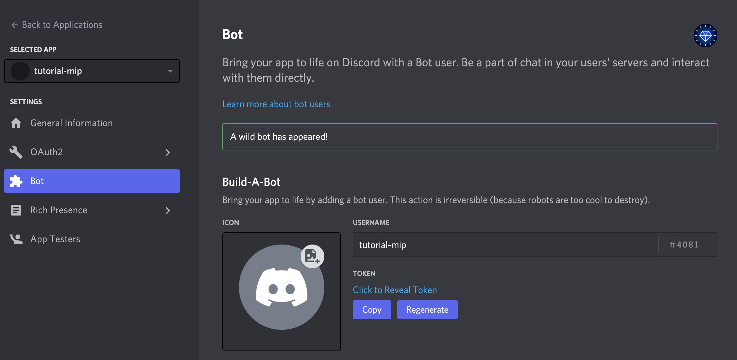 Y ya está, ya tenemos nuestra primera aplicación de Discord creada: